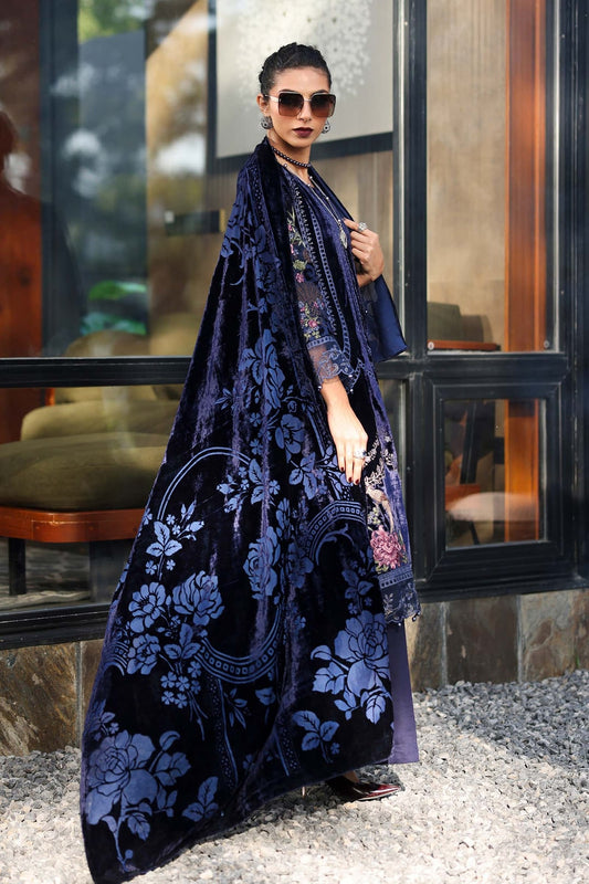 Blue Velvet Embroidered Unstitched 3 Piece Suit-Party Wear
