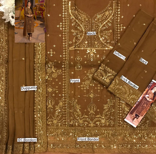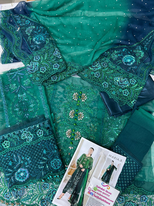 Embroidered Chiffon 3 Piece Unstitched Suit MBC-102 - Party Wear