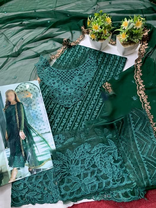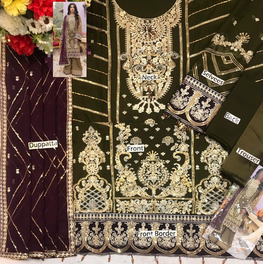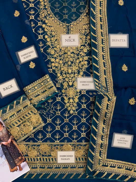 Embroidered Chiffon 3 Piece Unstitched Suit-Party Wear