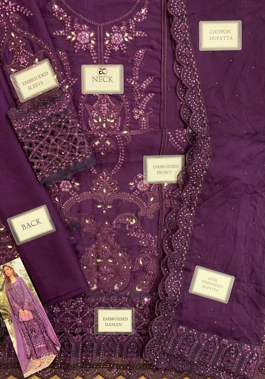 Embroidered Chiffon 3 Piece Unstitched Suit AL-Party Wear