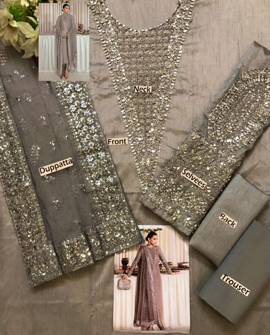 Mesuri Hand Embellished 4 Piece Unstitched Dress