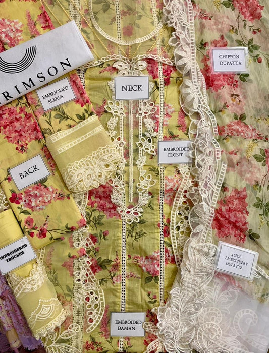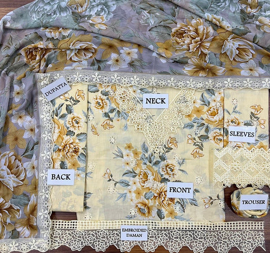 Yellow Chicken Kari Embroidered Lawn 3 Piece Unstitched Suit - Summer Collection