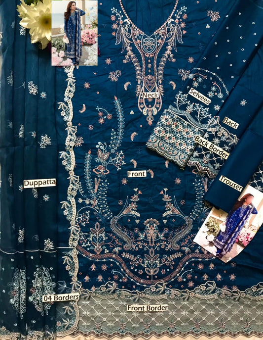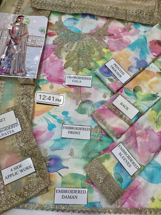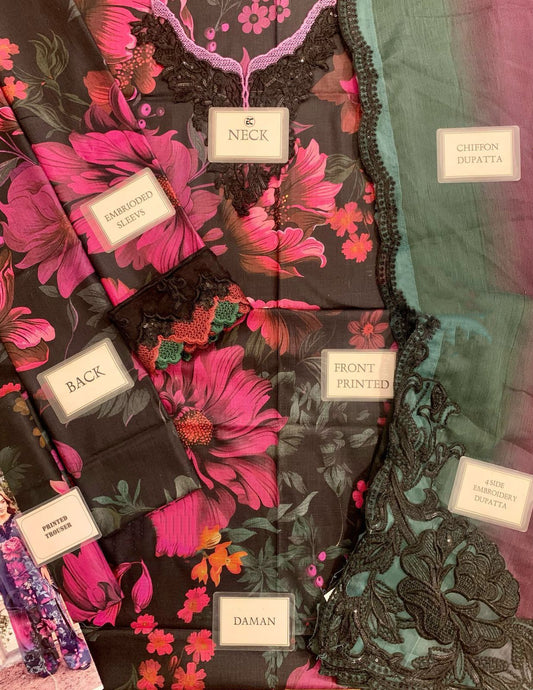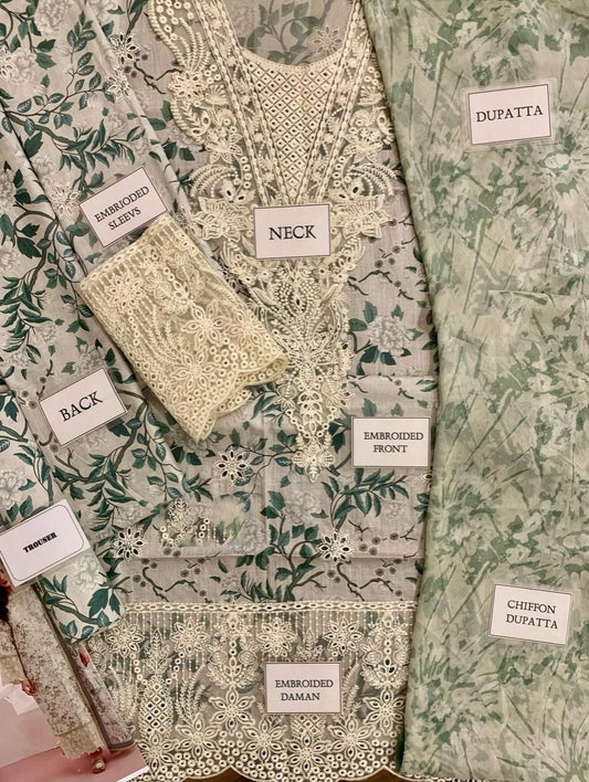 Embroidered Chiffon 3 Piece Unstitched Suit AL-Party Wear