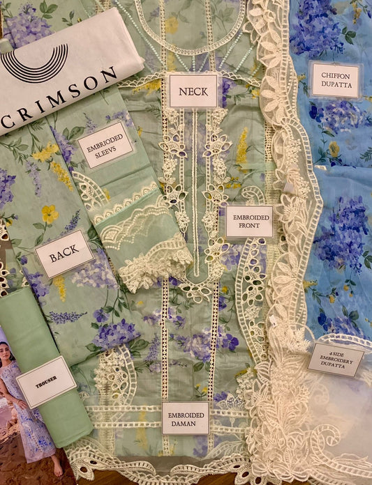 Chicken Embroidered Lawn 3 Piece Unstitched Suit SN-Summer Collection