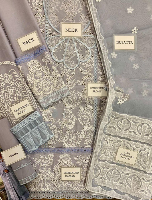 Embroidered Lawn 3 Piece Unstitched Suit - Summer Collection
