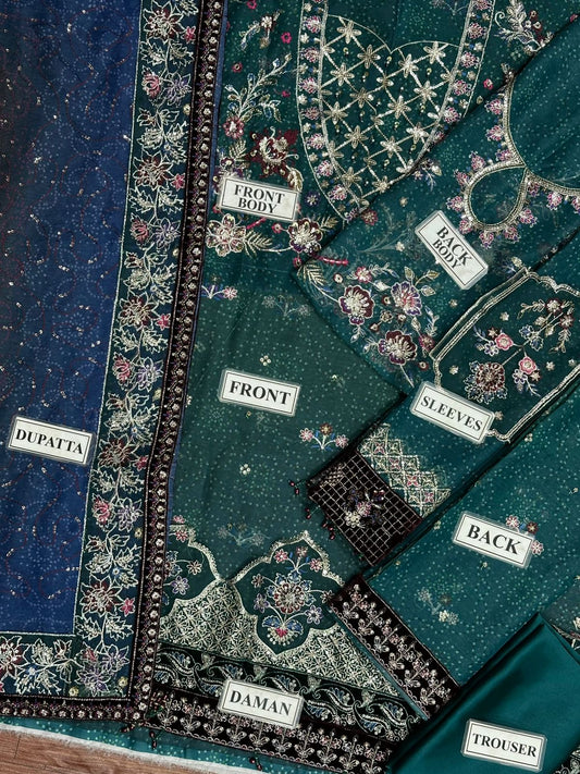 Luxury Organza Embroidered 3 Piece Unstitched Dress - Party Wear