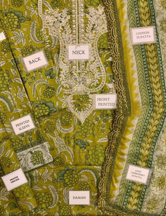 Luxury Chicken Kari Embroidered Lawn Dress 3 piece Unstitched Dress with Silk Dupatta - Summer Collection