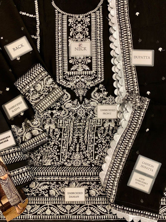 Heavy Embroided Chiffon 3 Piece Unstitched Dress-Party Wear