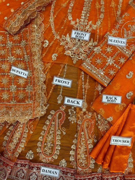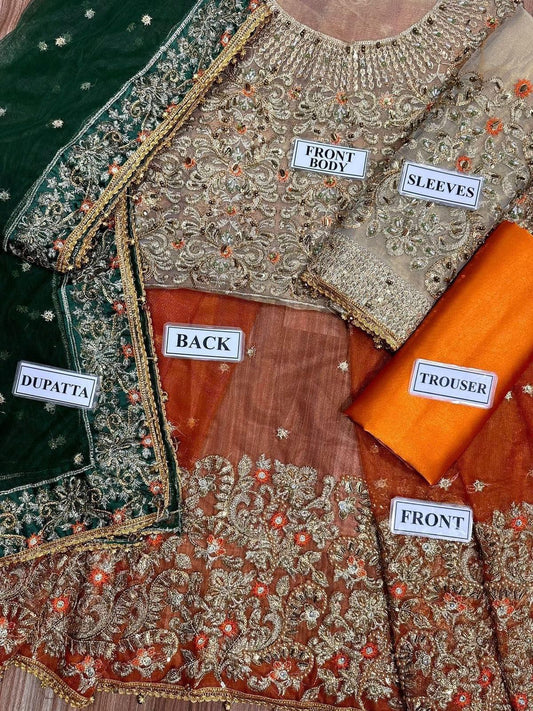 Orrange Bridal Net 3 Piece Unstitched Dress - Party Wear
