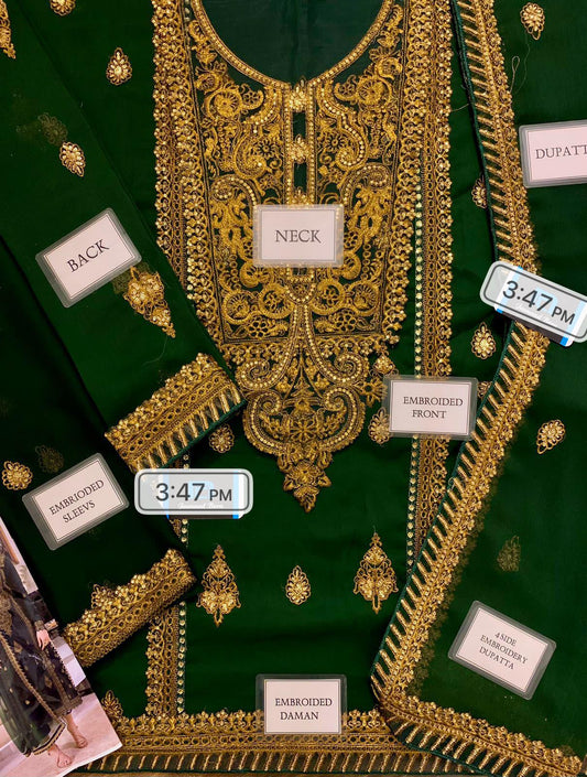 Green Embroidered Chiffon 3 Piece Unstitched Suit AJRNC-D18- Party Wear