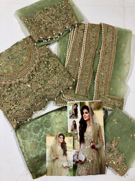 Pista Green Net Unstitched Party Wear 3 Piece Dress