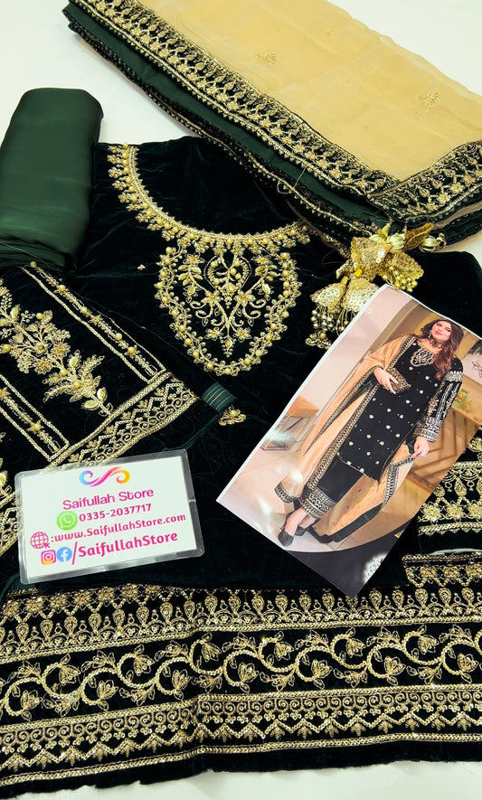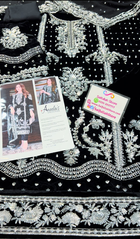 Luxury Velvet Dress 3 Piece Unstitched - ANL