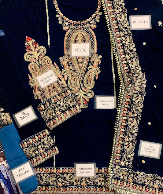 Velvet Embroidered Unstitched 3 Piece Suit ANL-07- Party Wear