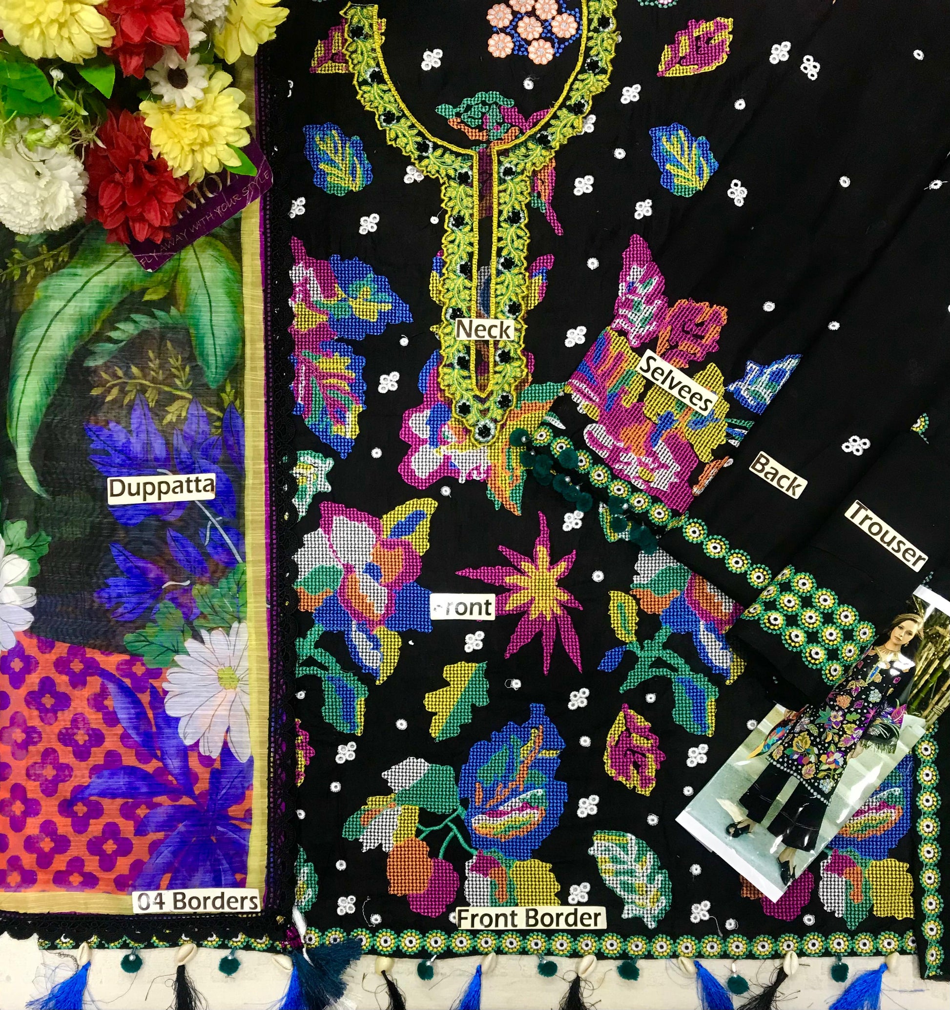 Black Chicken Kari Lawn 3 Piece Unstitched Suit -Amarin - Summer Collection