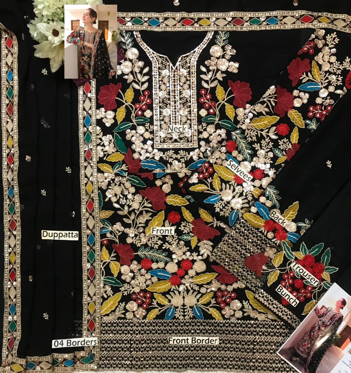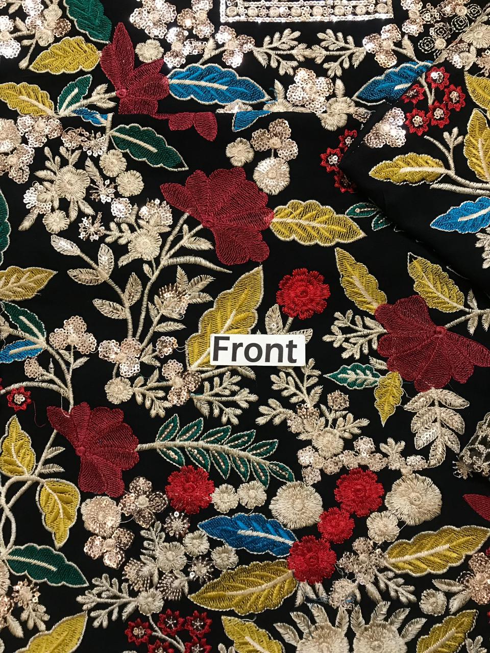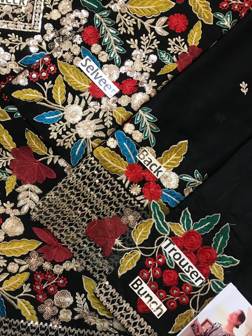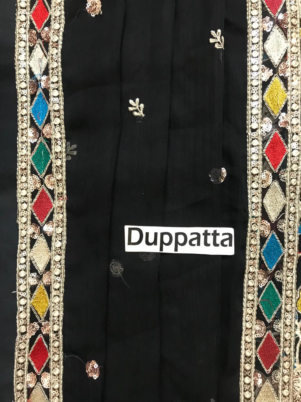 Black Embroided Chiffon 3 Piece Unstitched Dress-Party Wear