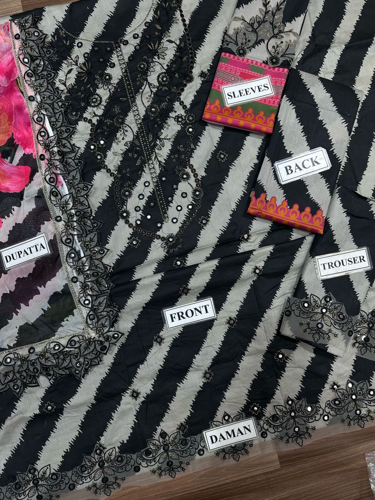 Black Embroidered Lawn 3 Piece Unstitched Suit - HOC
