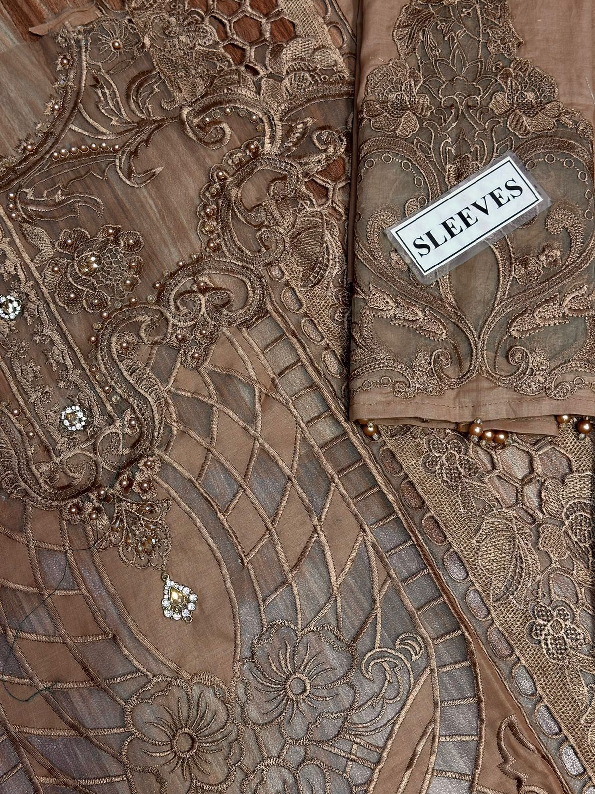 - SOFT COTTON FULLY HEAVY EMBROIDERED SELEEVES WITH LASER CUTTING ON FABRIC WITH HANGING TUSSLES ON CUFF