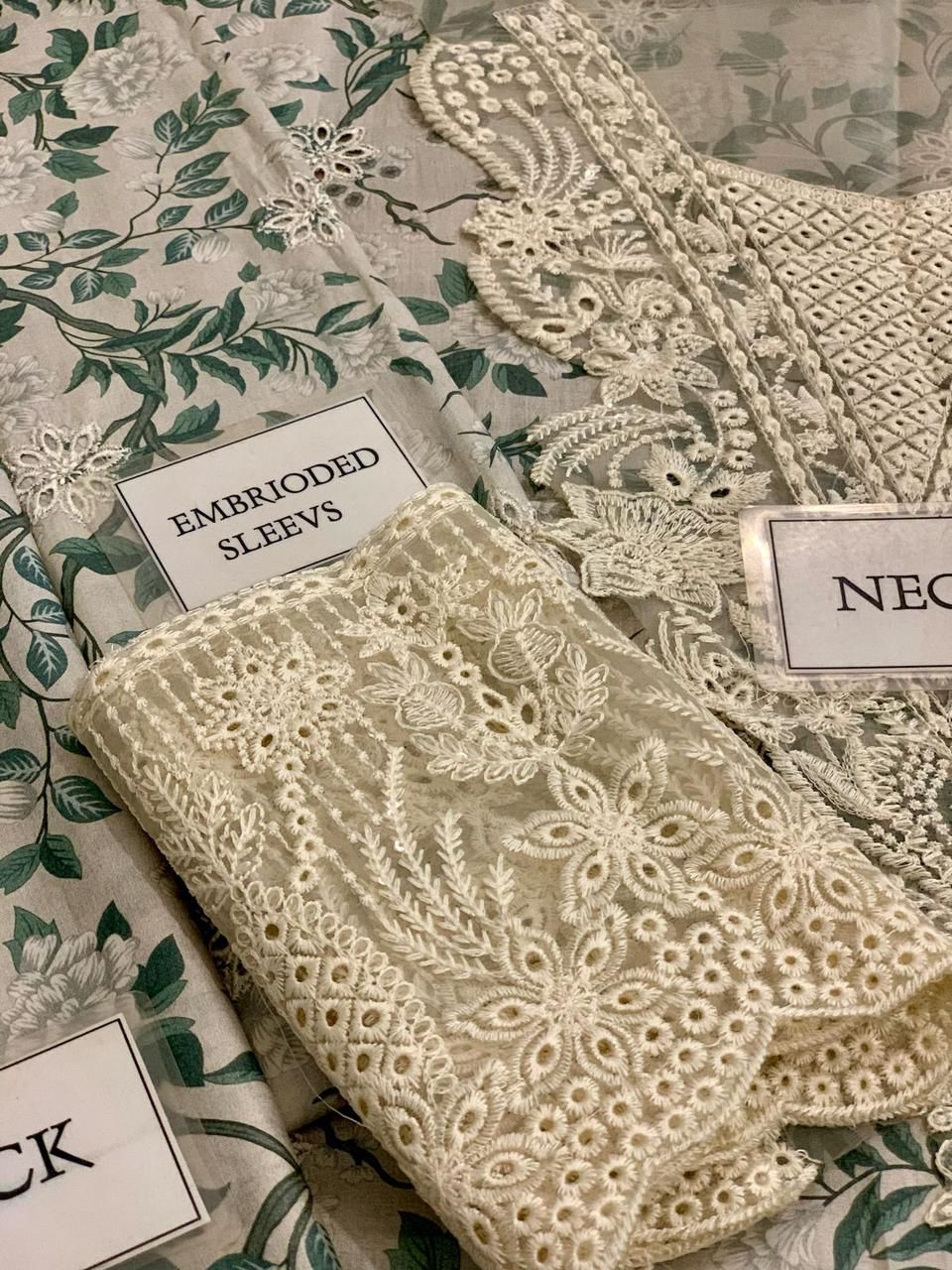 - Digital printed lawn sleeves with heavy embroidered spangle work sleeves border