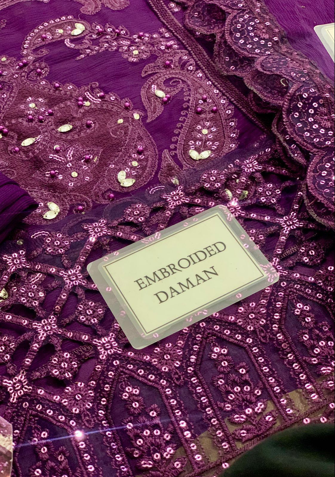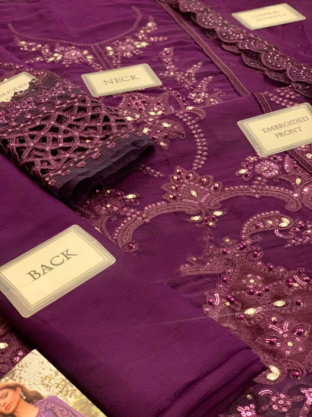 Embroidered Chiffon 3 Piece Unstitched Suit MBC-102 - Party Wear