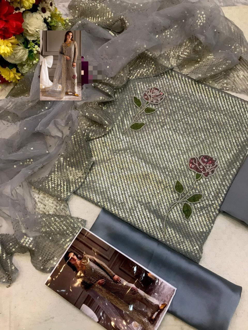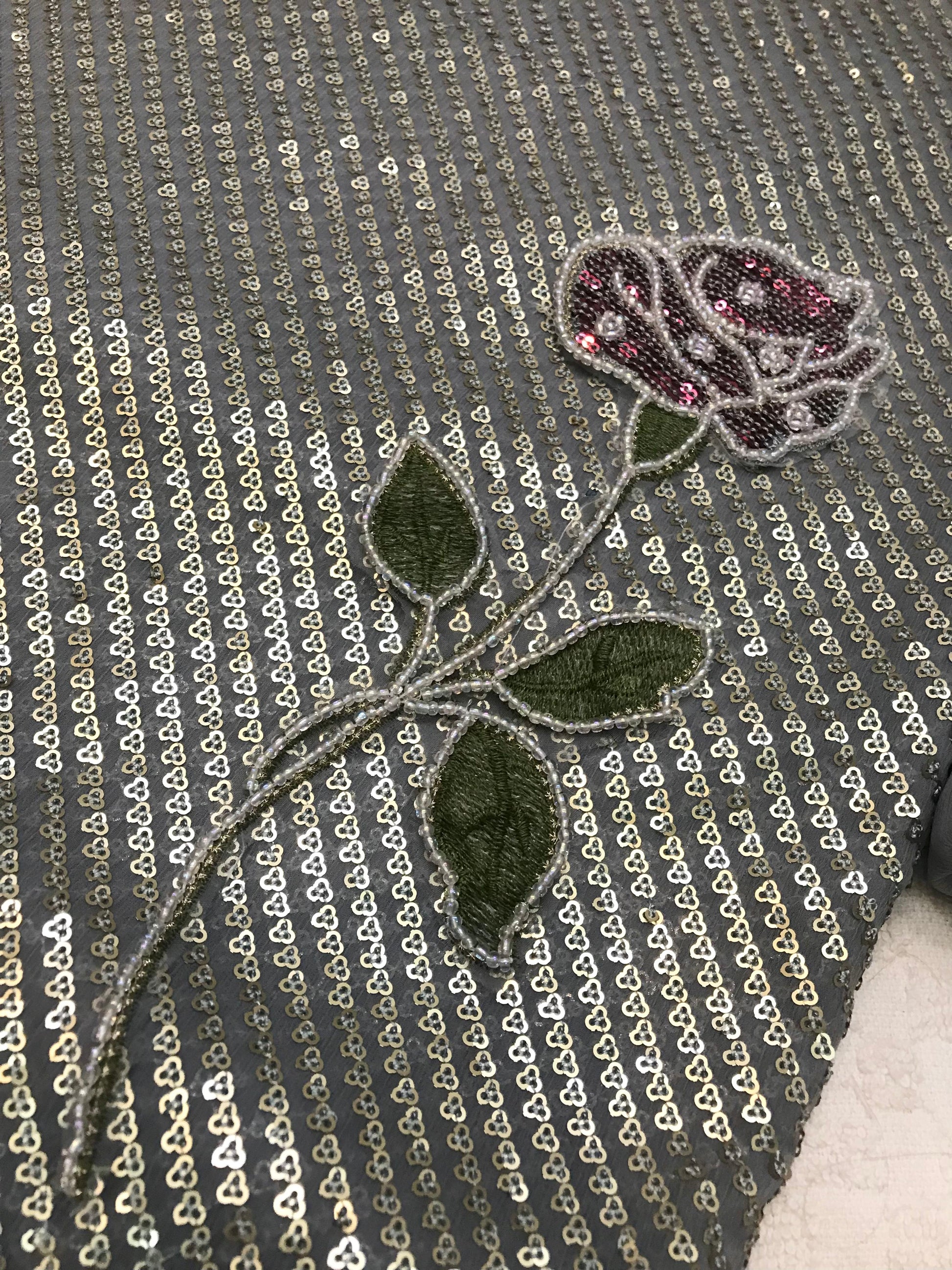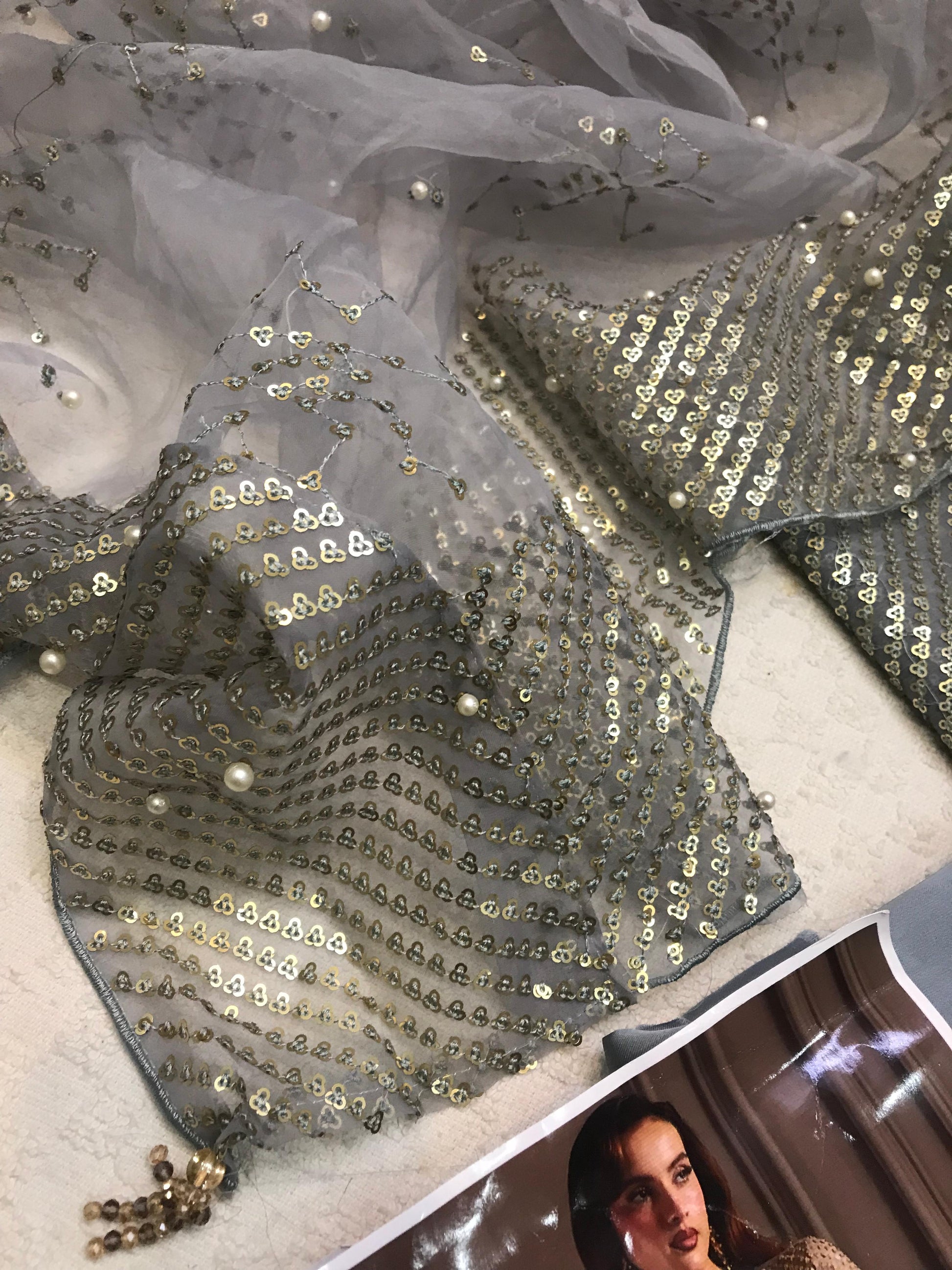 - Chiffon fully heavy embroidered spangle work front with heavy embroidered spangle work front bunches with fully hand emblishment adha work