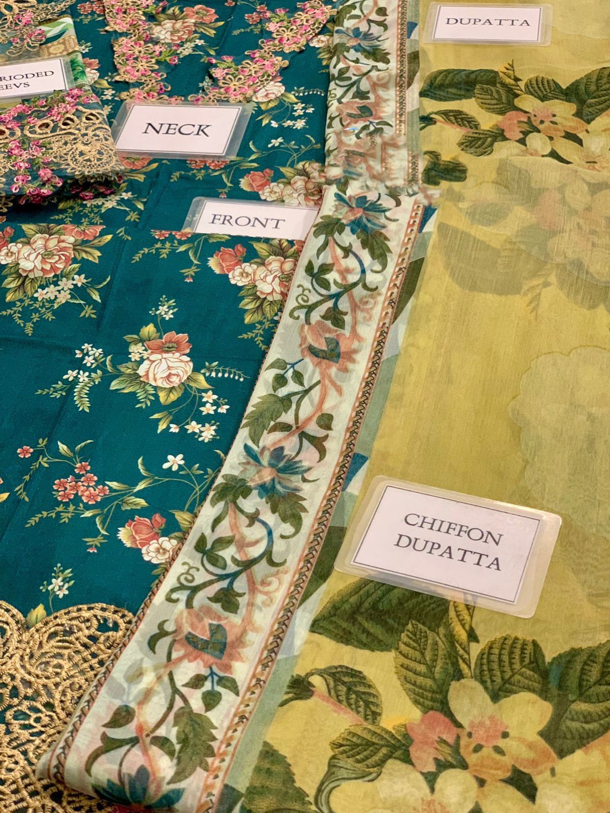 - Digital printed lawn front with fully heavy embroidered spangle work neckline with heavy embroidered spangle work daman border