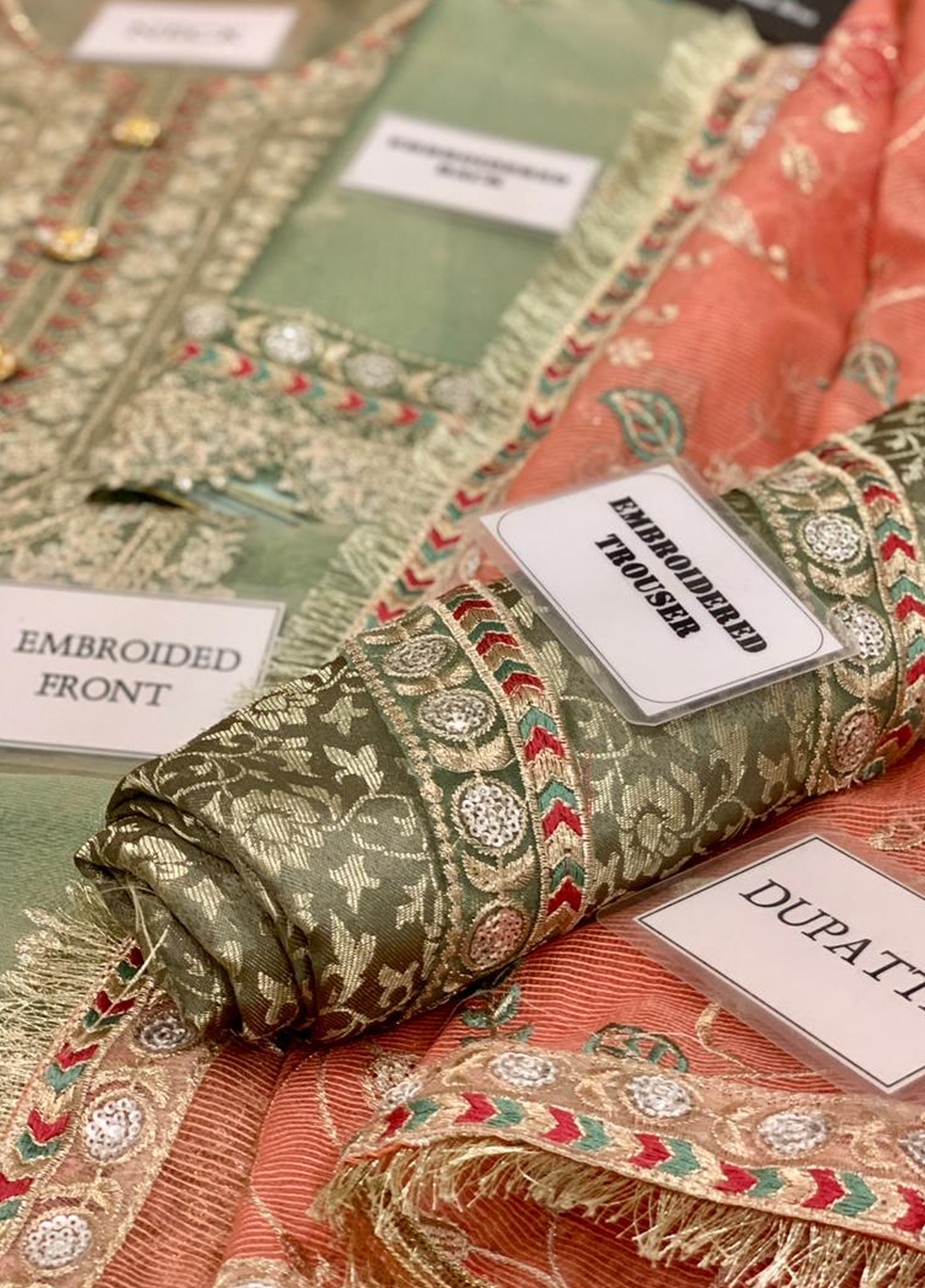 - Khaadi net fully heavy embroidered shawl dupatta with 4 side heavy embroidered spangle work lace attach with 4 side fancy lace.