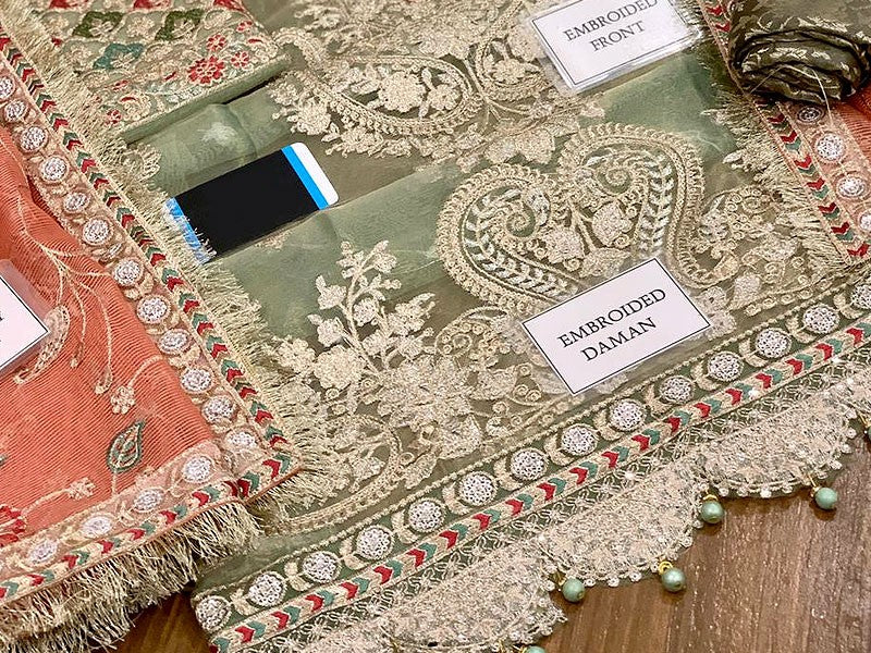 Pistachio Green Heavy Embroidered Unstitched 3 Piece Lehenga - Party Wear