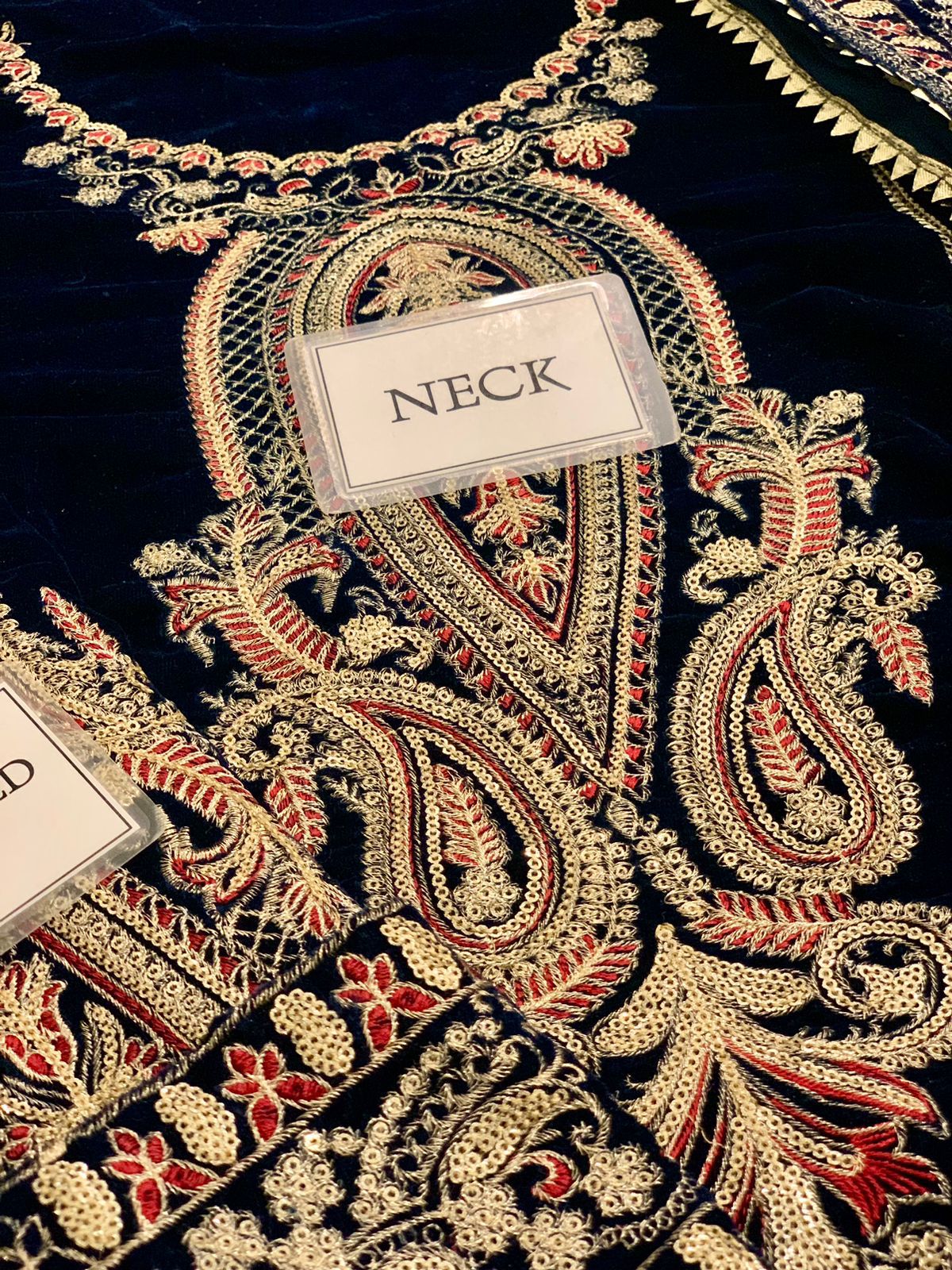 Velvet Embroidered Unstitched 3 Piece Suit ANL-07- Party Wear