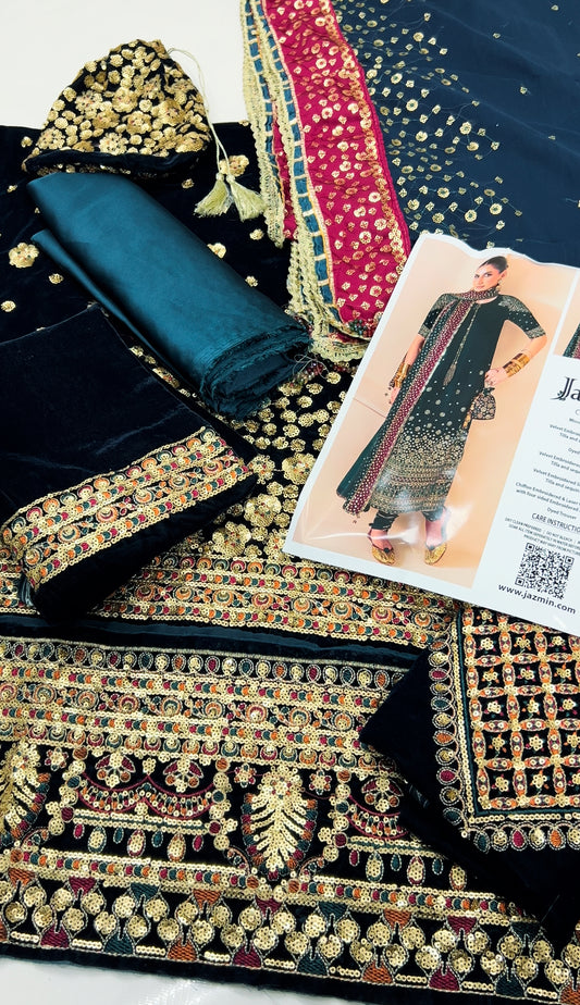Zink Velvet Embroidered Unstitched 3 Piece Suit